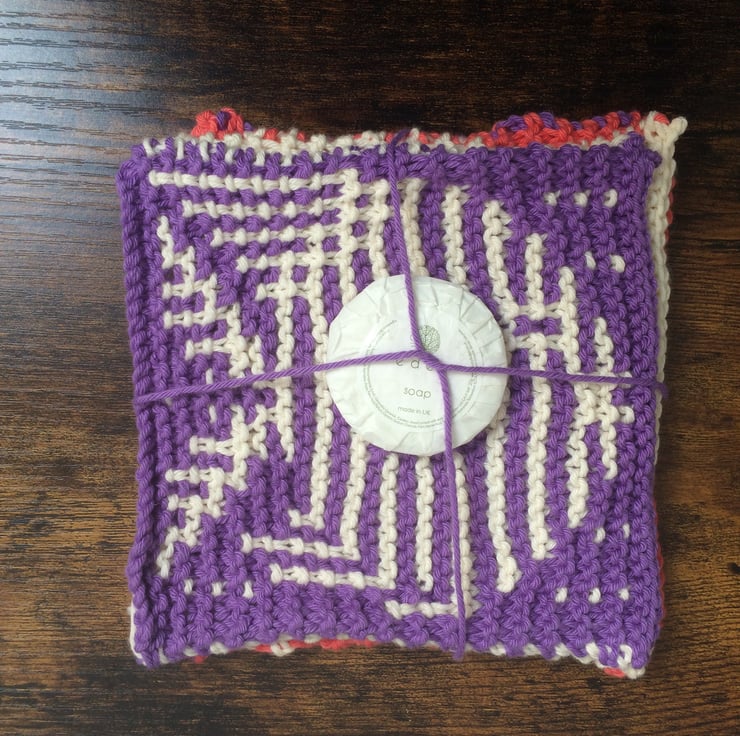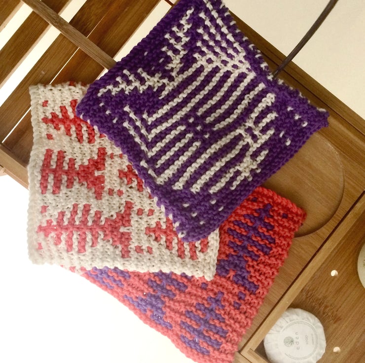 Hand knitted 100% cotton wash cloths knitted to the original Feminine Touch design.
