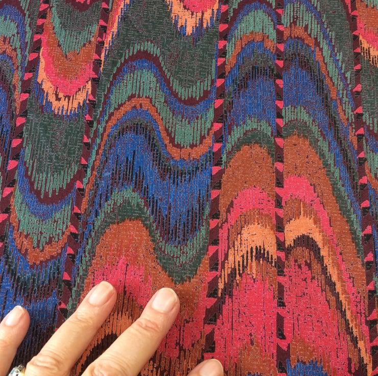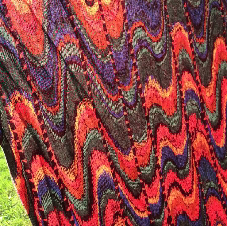 I remember doing long stitch Bargello tapestry in this style in the 80s - and you can see how that must have inspired this design. Fabulously vivid colours!