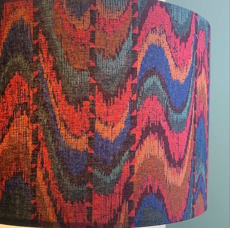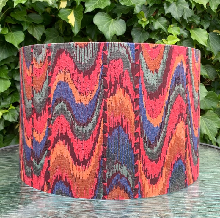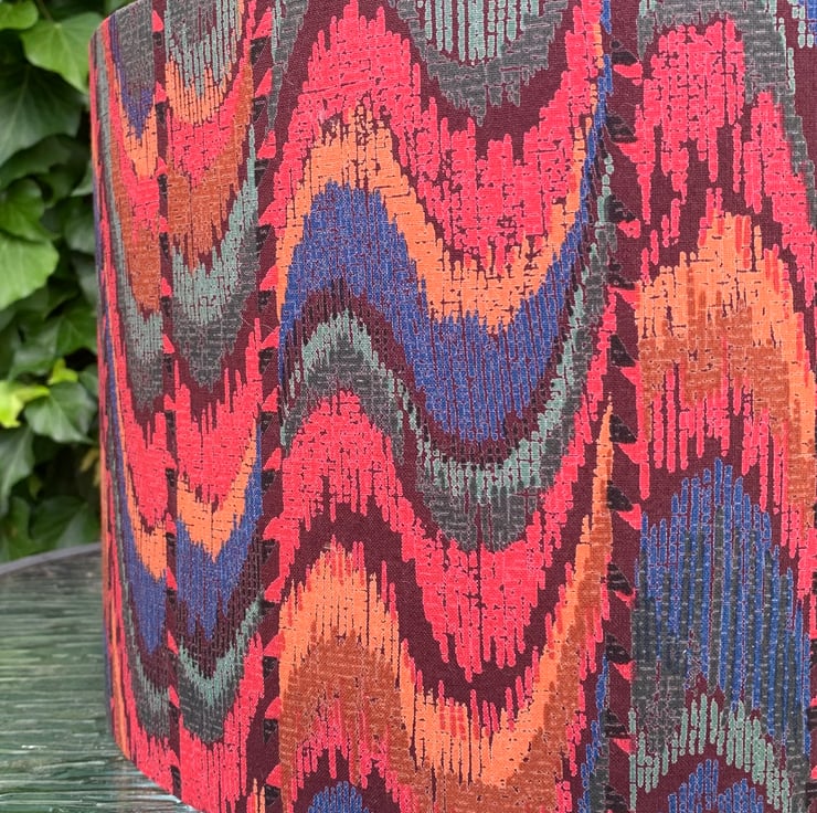 80s Flame Red Blue Florentine Bargello Style Vintage fabric Lampshade