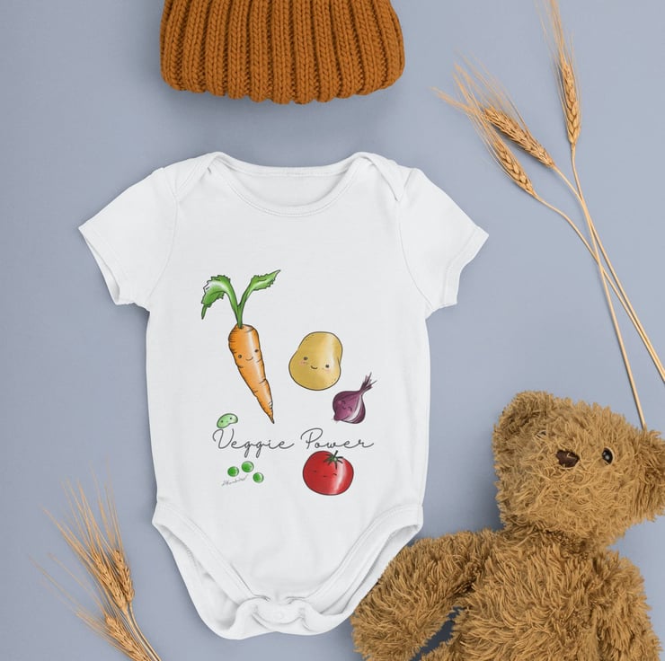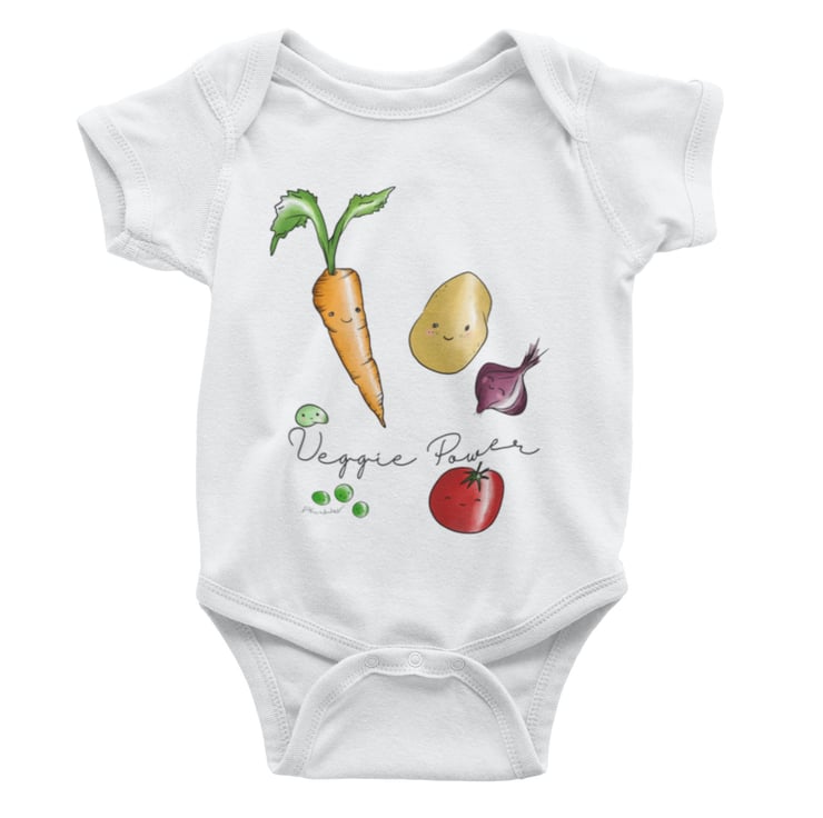 A baby bodysuit with a unique and original illustration painted by hand and digitally printed.