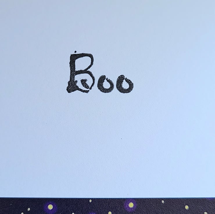 I made the envelope from orange quality paper and stamped a pumpkin and bat on it. Lots of little fun details on this card to enjoy, check out the tiny spider hanging from the branch!