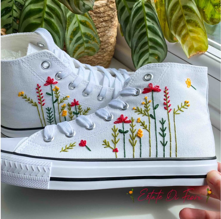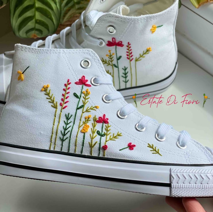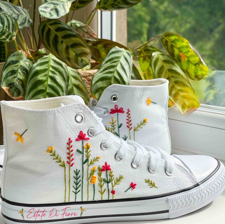 You will receive a unique pair of shoes which I will personally embroider by hand just for you.