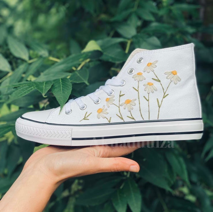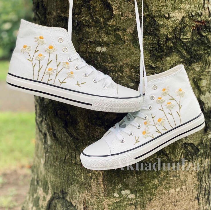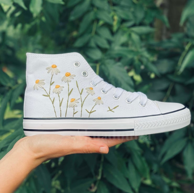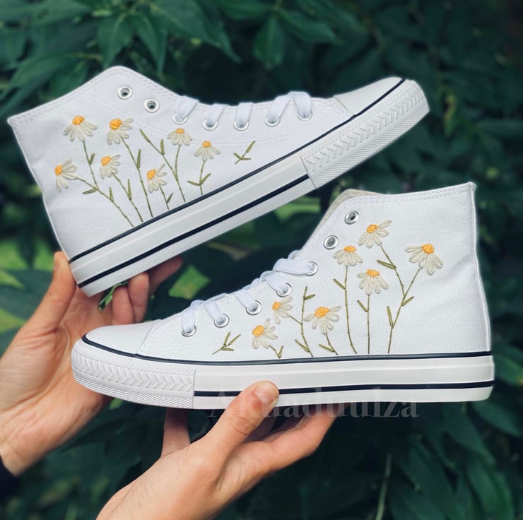 You will receive a unique pair of shoes which I will personally embroider by hand just for you.