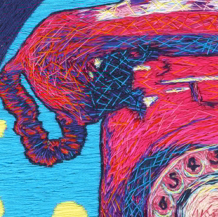 This is a reproduction of an original piece of my work which is mixed media, hand painted and hand embroidered.