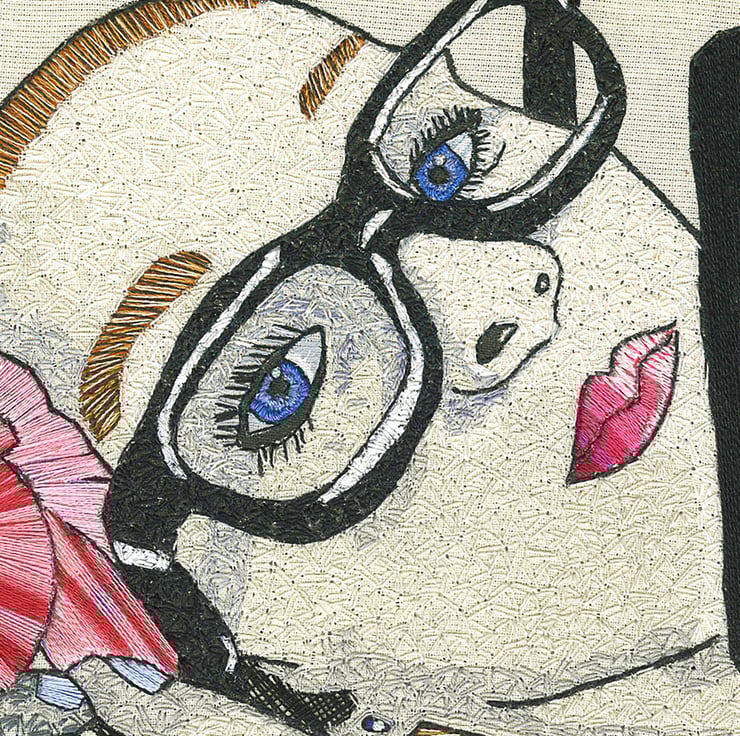 This is a reproduction of an original piece of my work which is mixed media, hand painted and hand embroidered.
