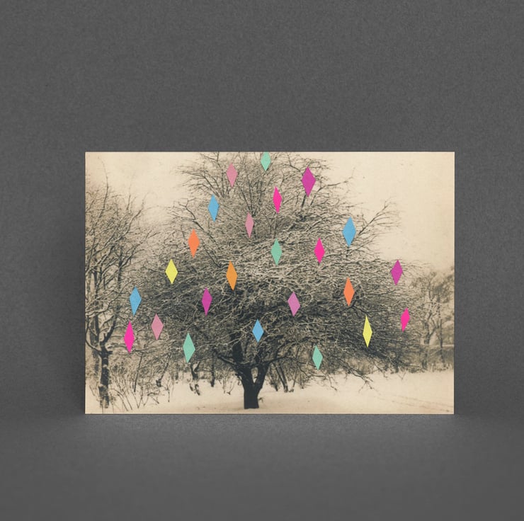 A traditional snow scene with a modern edge. This pretty Christmas card will make a loved one smile.