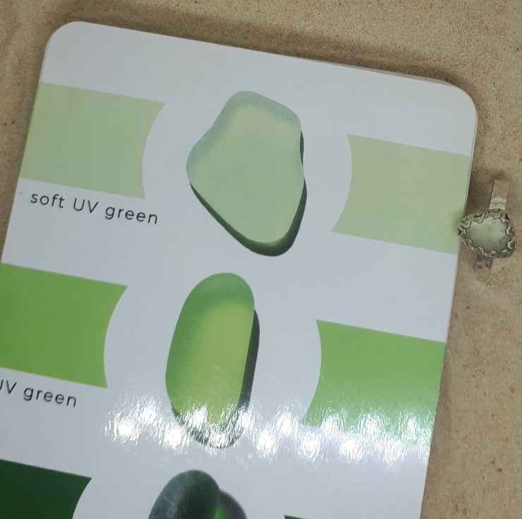 Due to the nature of sea glass and the varying thickness of the glass, it will look different shades in different lights, which is all part of its magic.