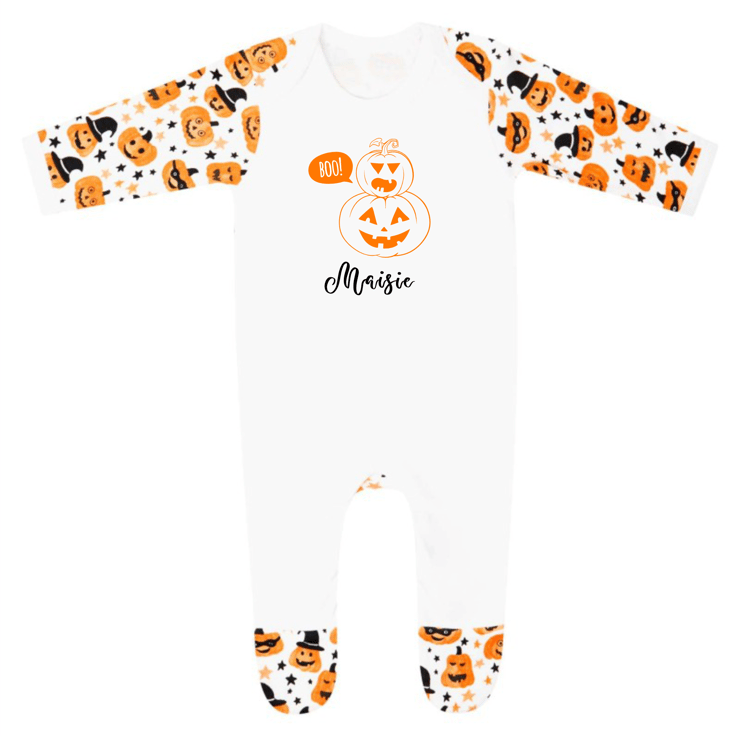 Get your little one excited for the Autumn season with our lovely Personalised Pumpkin Boo Halloween Babygrow!