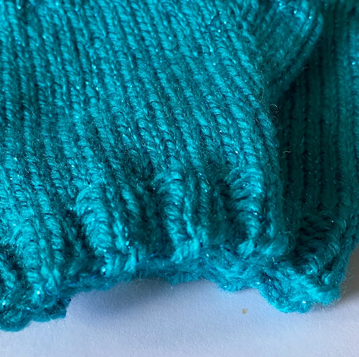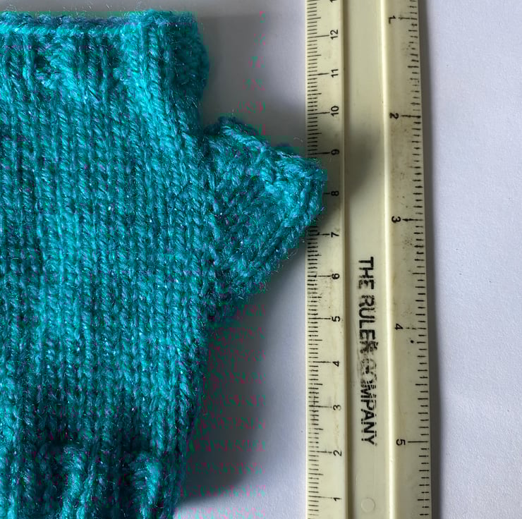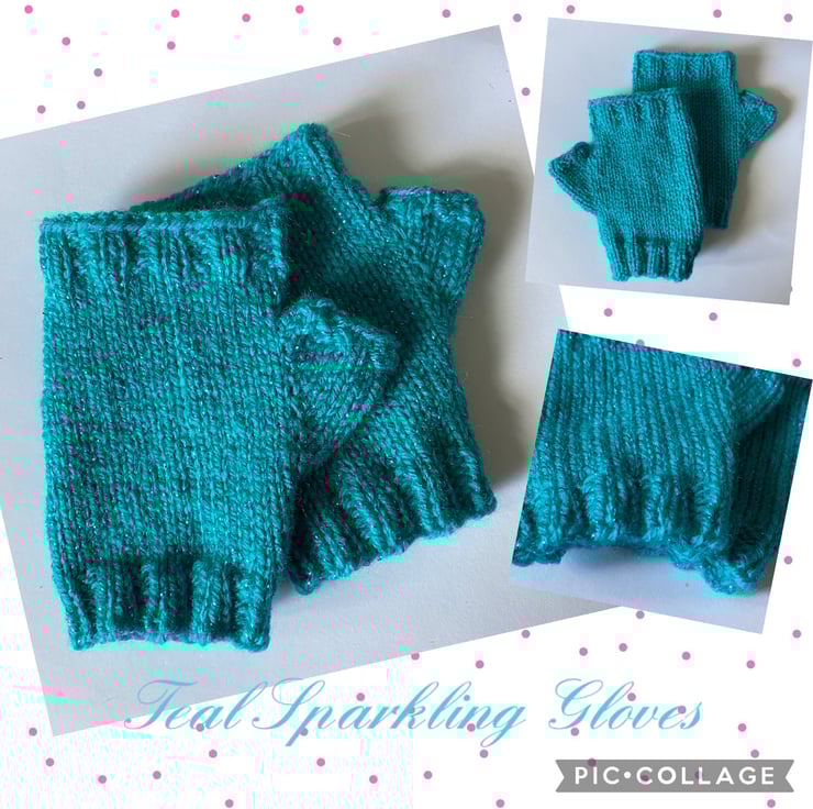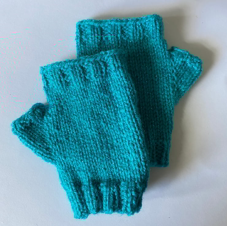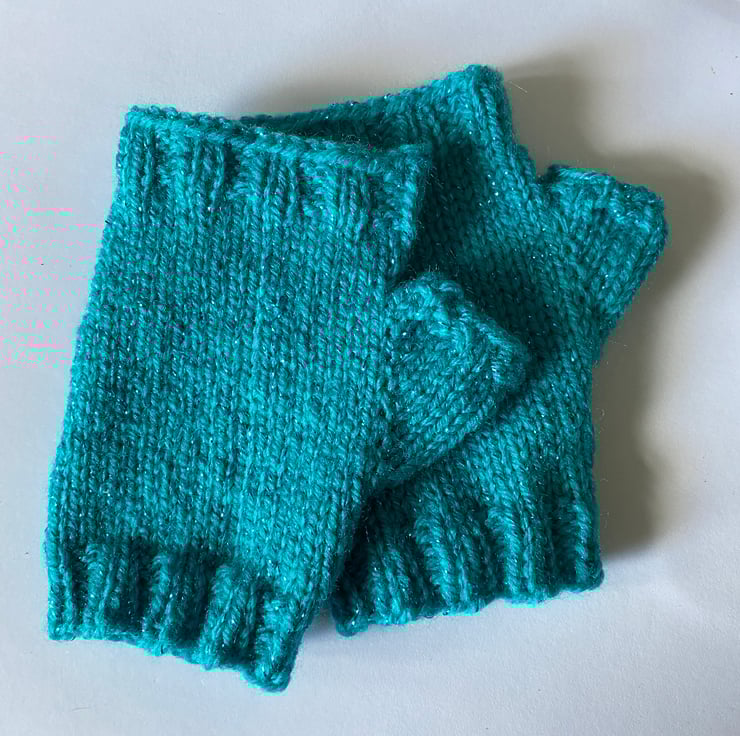 Handmade Fingerless Mittens in Teal With a shiny thread running though DK Acrylic Yarn (New)