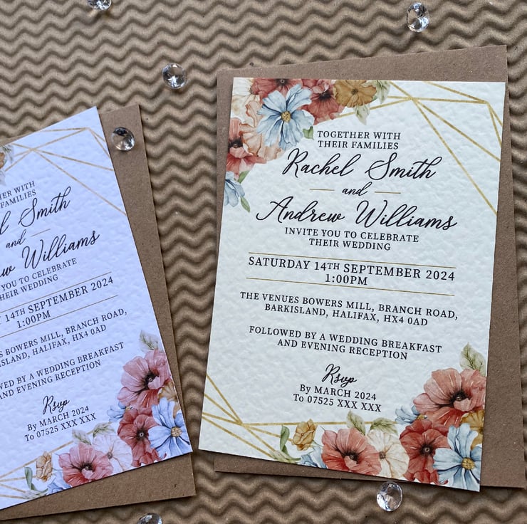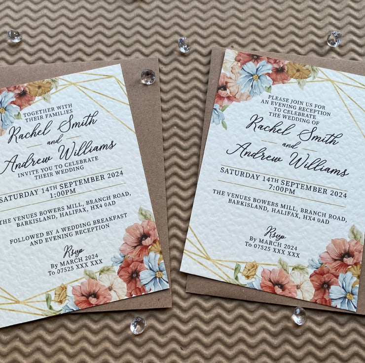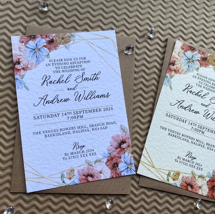 Quantity 1 includes 10 x (A6 or A5) size single sided personalised invitation cards