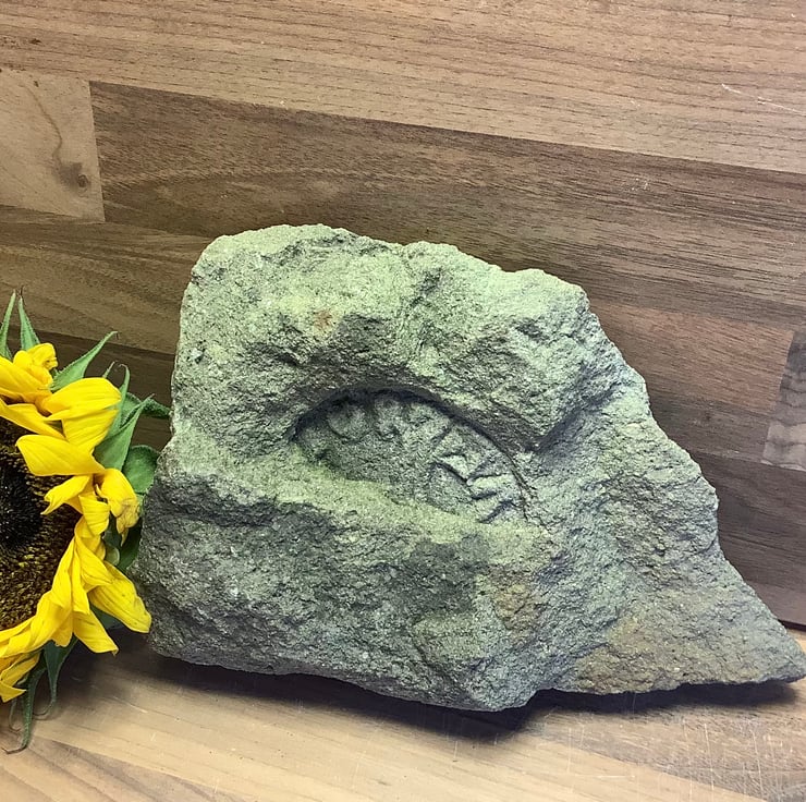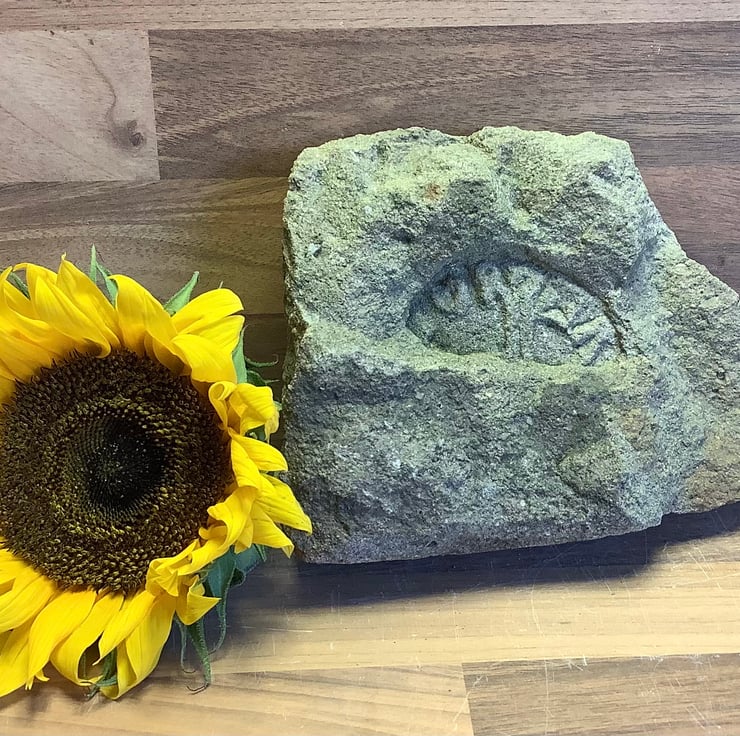 A Saxon 'coin in the clod' carved out of a rough piece of weathered stone. Ideal gift for a metal detectorist. Price includes delivery of this bulky item. See size details below.