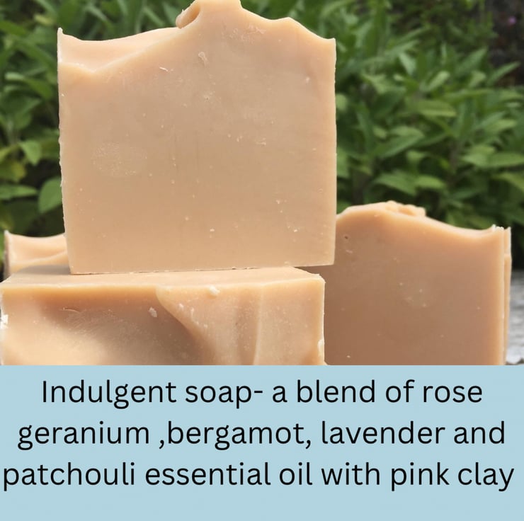 The box includes one bar each of Simply Lavender, Indulgent (also with rose geranium, bergamot and patchouli), and nourishing (also containing Goats milk and cornish honey).