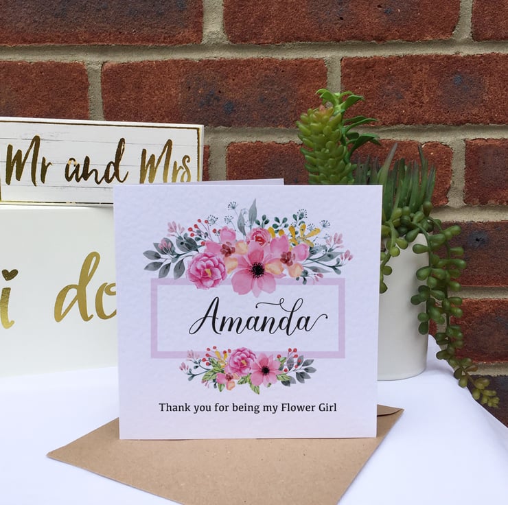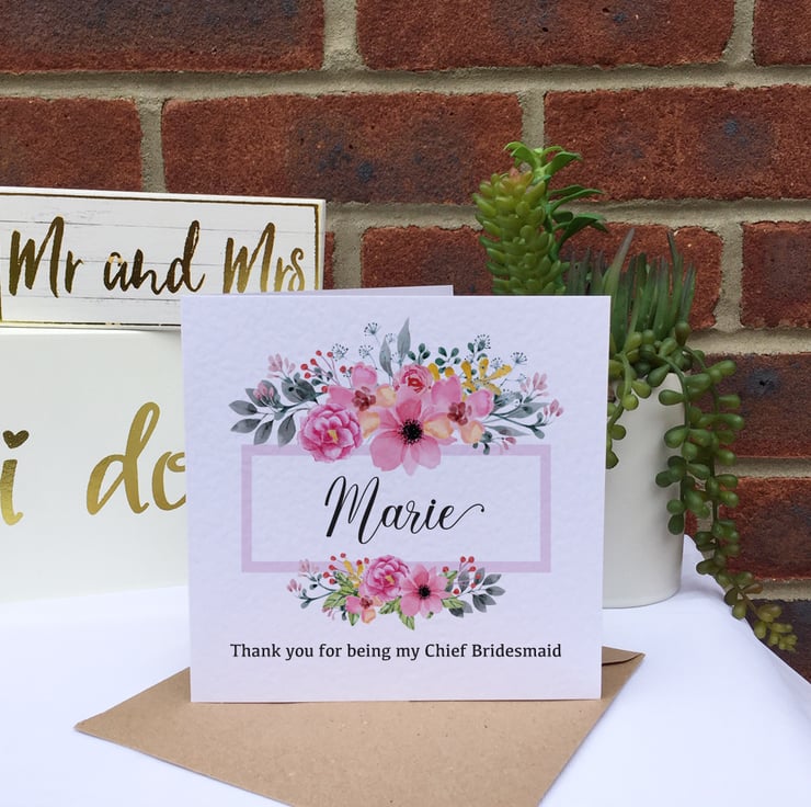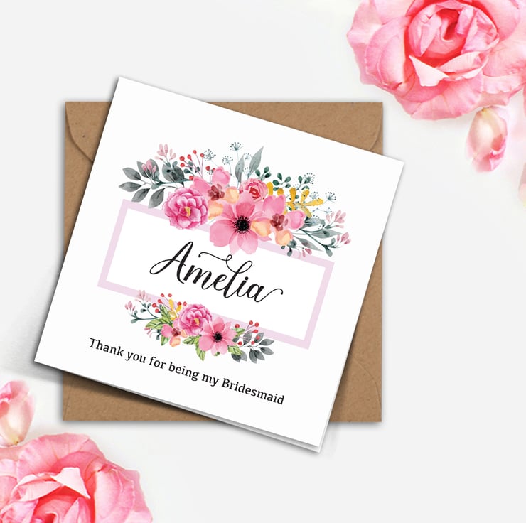 Pink wild flowers and greenery, blush pink frame, Bridesmaid invitation card