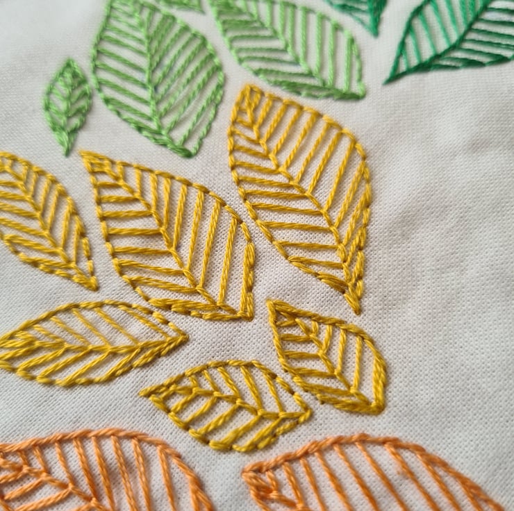 The As the Leaves Turn Hand Embroidery Pattern details the floss and stitches I used in the example photo but feel free to make your own choices – it’s up to you!