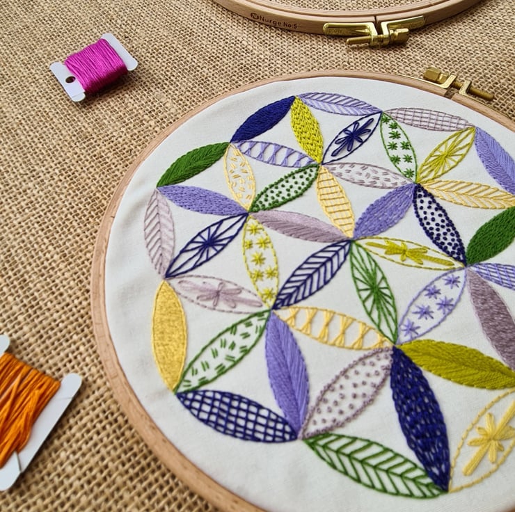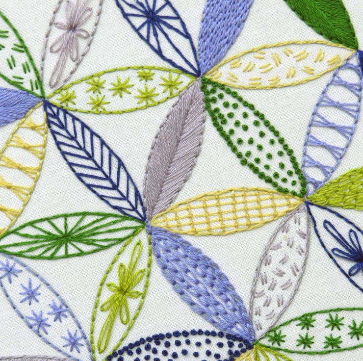 This Starflower embroidery sampler is great fun to stitch for both beginners as well as those who are experienced in hand embroidery stitches.