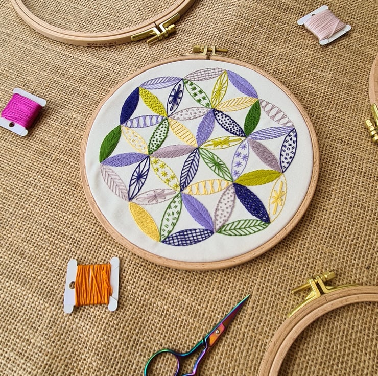 Nicola started the company in 2019 after finding it difficult to find hand embroidery patterns that were exciting and a bit different from the usual. Wanting to combine her love of hand embroidery stitches, traditional sampler techniques as well as quilt designs(!) she decided to come up with something herself and it has evolved into an array of wonderful and colourful designs that will hopefully inspire and excite people to pick up a needle and get stitching.