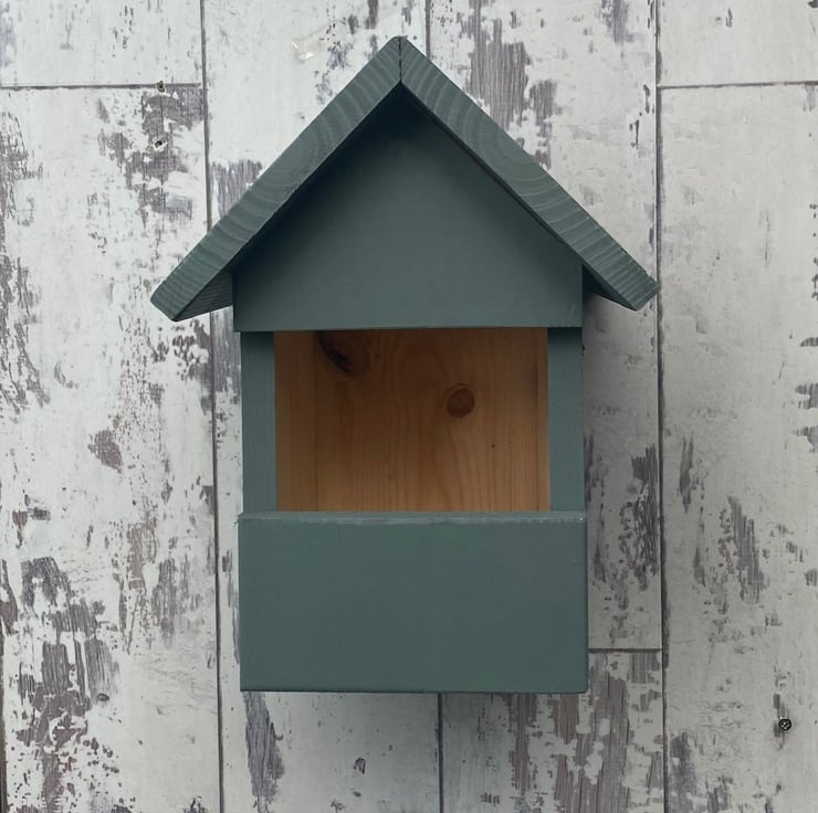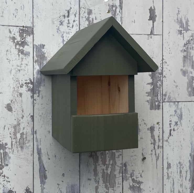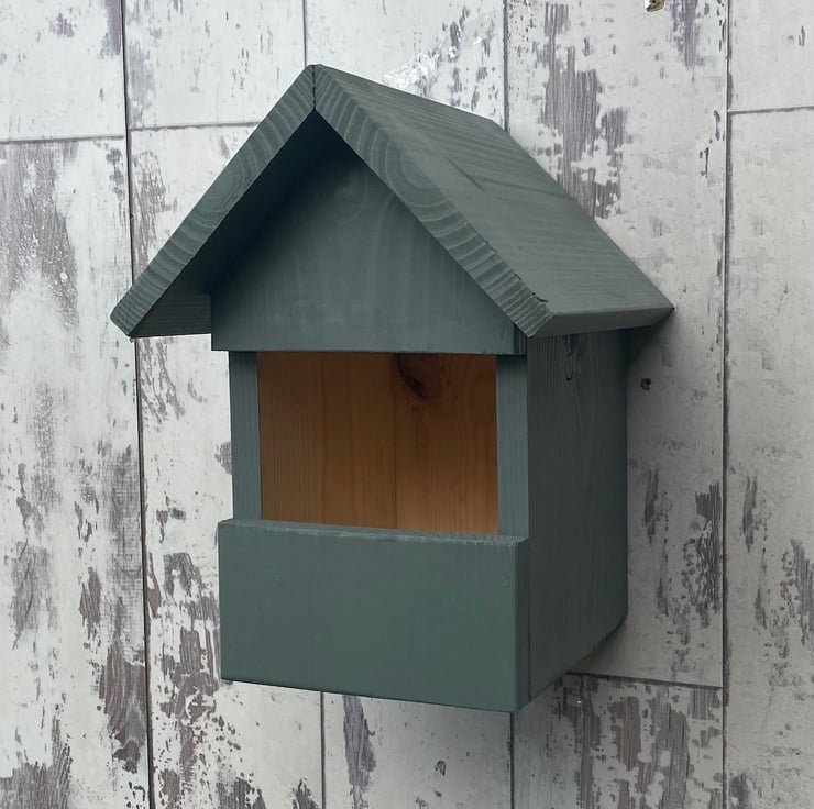 Designed with an open front, as Robins, Swifts and Wrens prefer, this box is easy to install using the keyhole hanger on the back which slots into a nail or screw. The box has been treated with Non Toxic, water based paint that is safe for birds in Urban Slate, Old English and Wild Thyme.