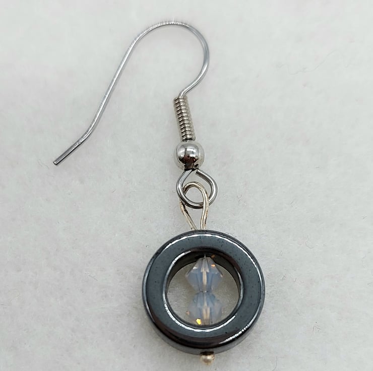 These earrings shown are: Hematite Circle and swarovski Drop Earrings