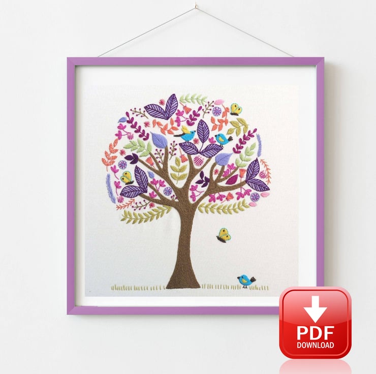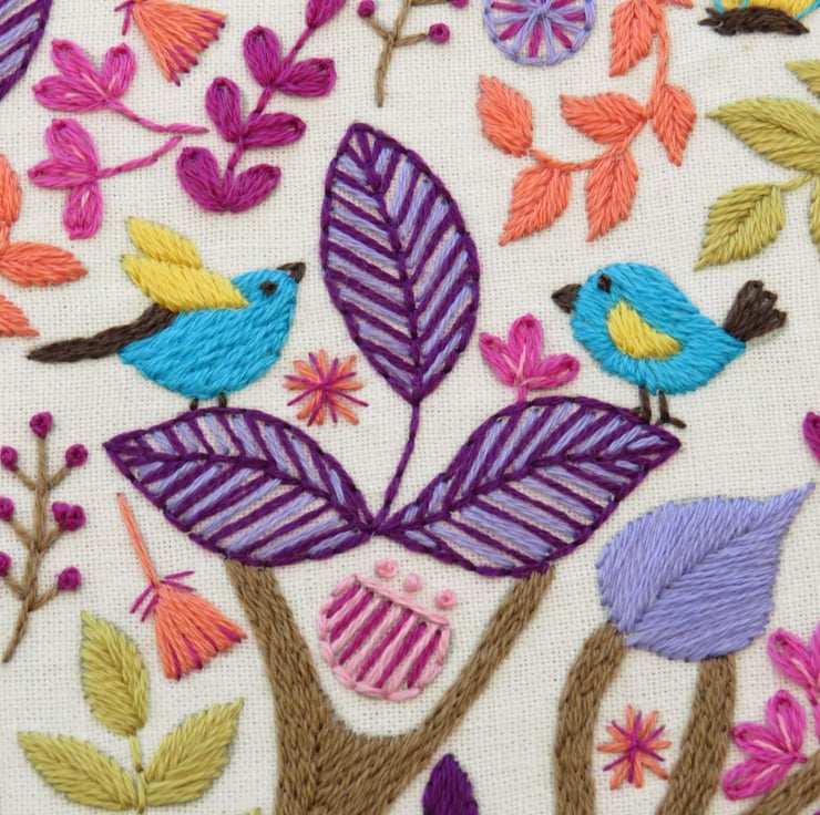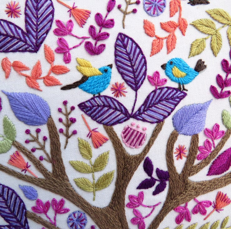 The Folk Tree Stitchery, Hand Embroidery Pattern details the floss and stitches I used in the example photo but feel free to make your own choices – it’s up to you!