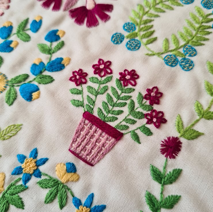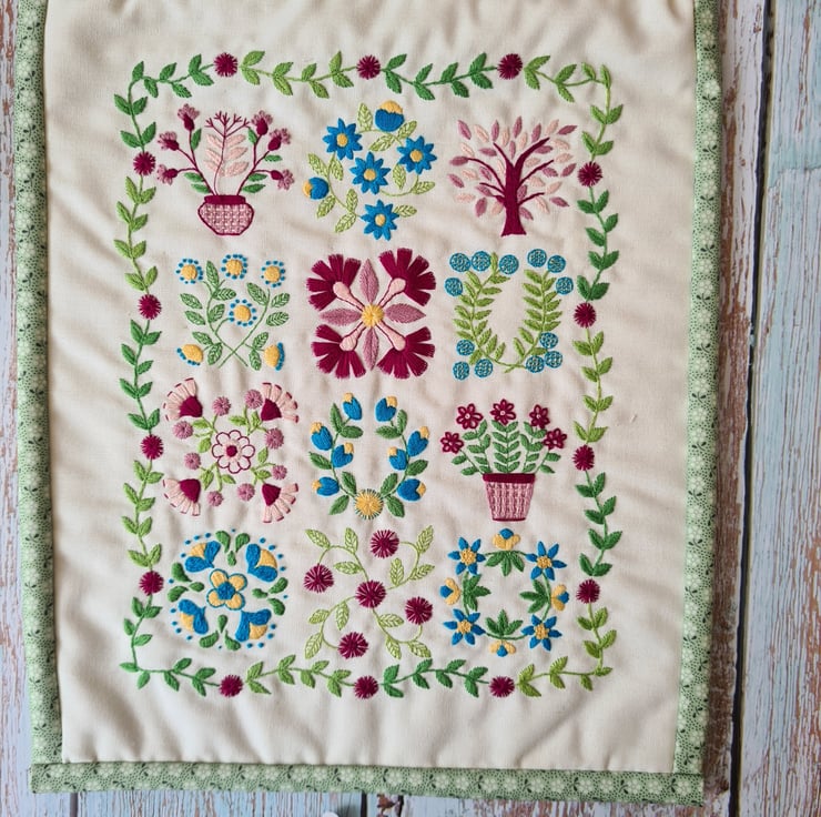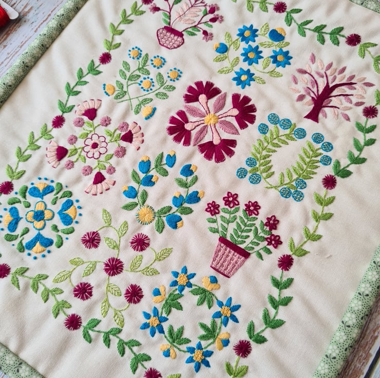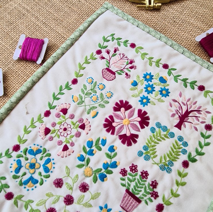 Nicola started the company in 2019 after finding it difficult to find hand embroidery patterns that were exciting and a bit different from the usual. Wanting to combine her love of hand embroidery stitches, traditional sampler techniques as well as quilt designs(!) she decided to come up with something herself and it has evolved into an array of wonderful and colourful designs that will hopefully inspire and excite people to pick up a needle and get stitching.