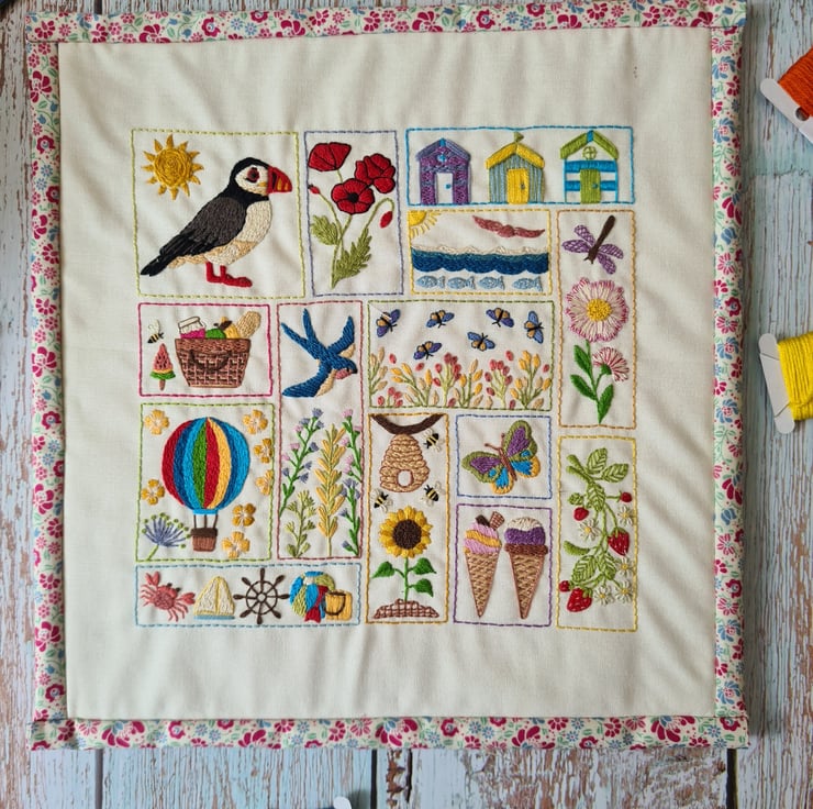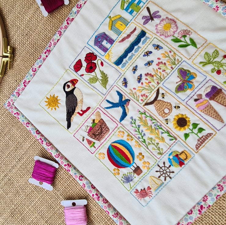 Nicola started the company in 2019 after finding it difficult to find hand embroidery patterns that were exciting and a bit different from the usual. Wanting to combine her love of hand embroidery stitches, traditional sampler techniques as well as quilt designs(!) she decided to come up with something herself and it has evolved into an array of wonderful and colourful designs that will hopefully inspire and excite people to pick up a needle and get stitching.