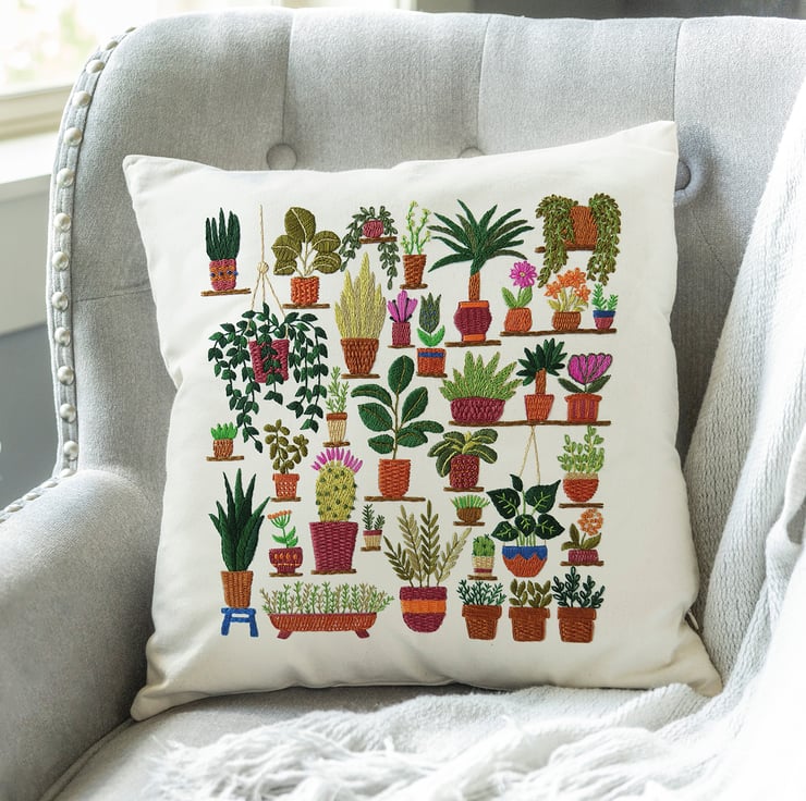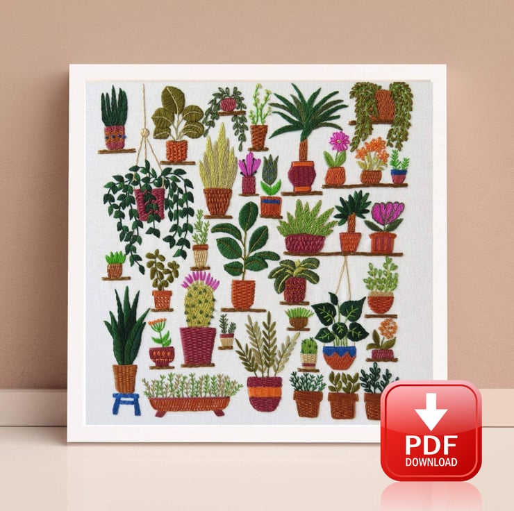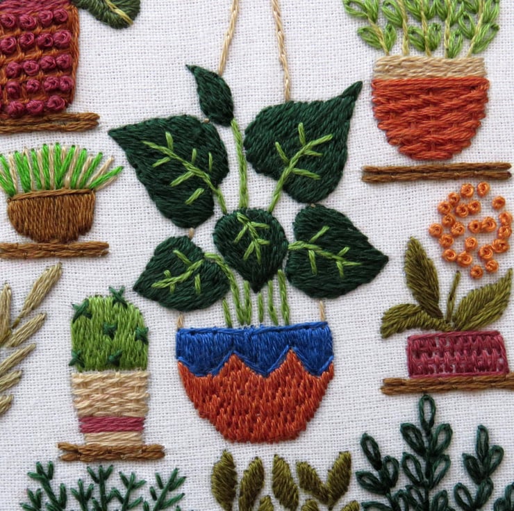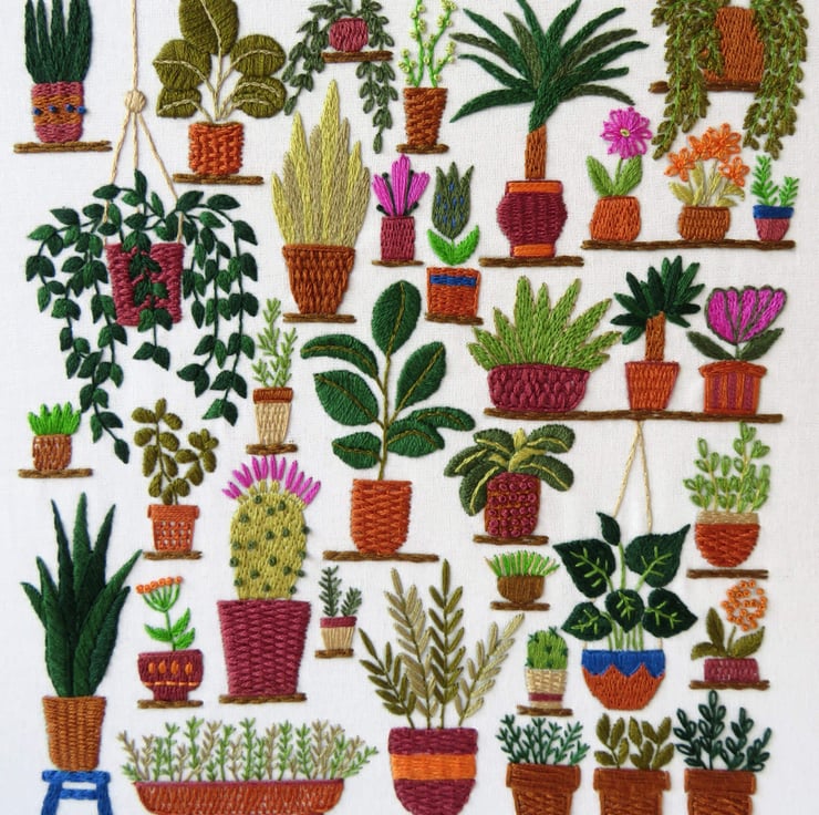 Escape to a wonderful world of plants with this modern hand embroidery sampler. There are 35 plants to enjoy stitching in this design and the end result is a striking design any plant enthusiast would love to own.