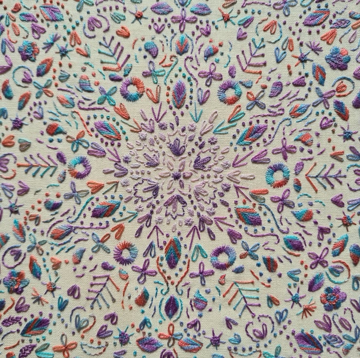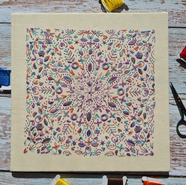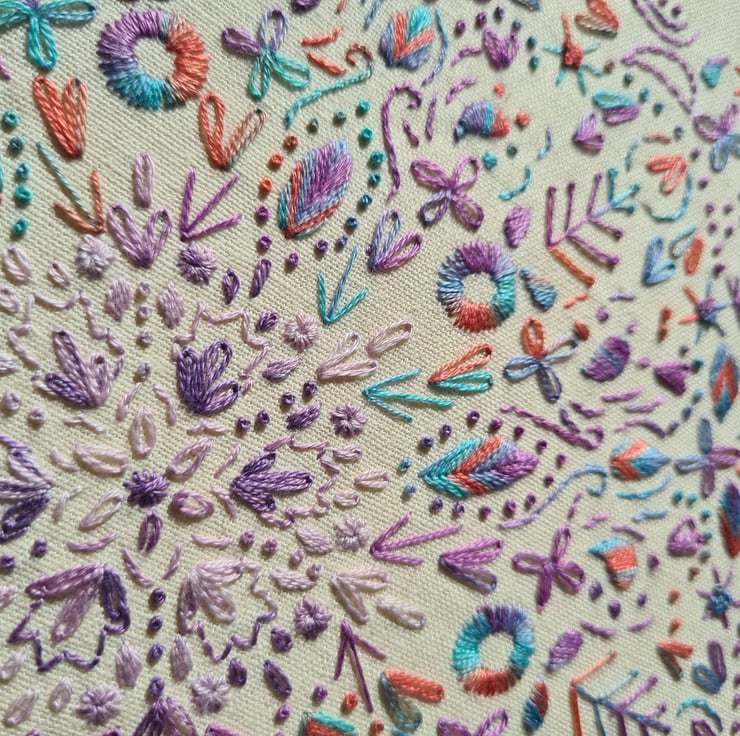 Nicola started the company in 2019 after finding it difficult to find hand embroidery patterns that were exciting and a bit different from the usual. Wanting to combine her love of hand embroidery stitches, traditional sampler techniques as well as quilt designs(!) she decided to come up with something herself and it has evolved into an array of wonderful and colourful designs that will hopefully inspire and excite people to pick up a needle and get stitching.