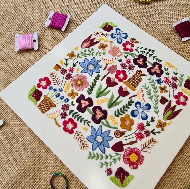 Nicola started the company in 2019 after finding it difficult to find hand embroidery patterns that were exciting and a bit different from the usual. Wanting to combine her love of hand embroidery stitches, traditional sampler techniques as well as quilt designs(!) she decided to come up with something herself and it has evolved into an array of wonderful and colourful designs that will hopefully inspire and excite people to pick up a needle and get stitching.