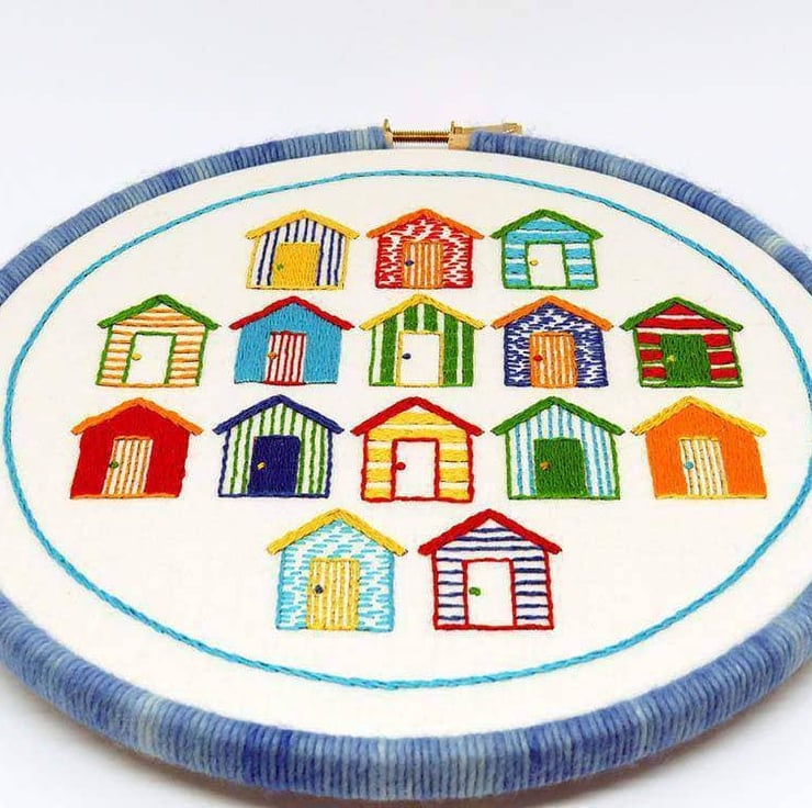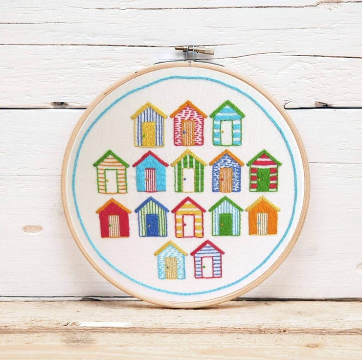 Beach Huts Hand Embroidery Pattern fits nicely in a 7 inch hoop.