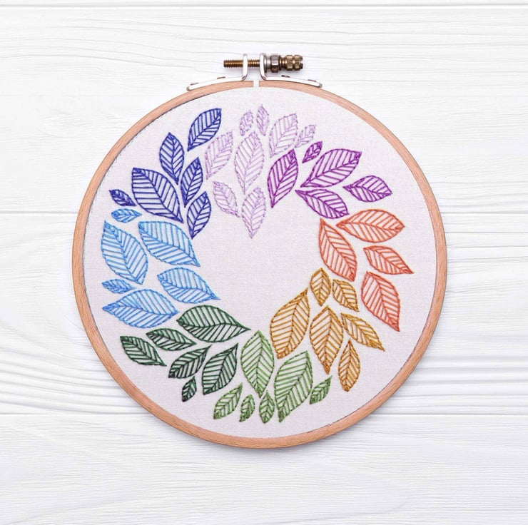 Lose yourself in this nature-inspired embroidery design stitching gorgeous colored leaves around into a wheel of color and forming a wonderful heart in the center. A perfect beginner embroidery design or a nice simple design for the more experienced stitcher.