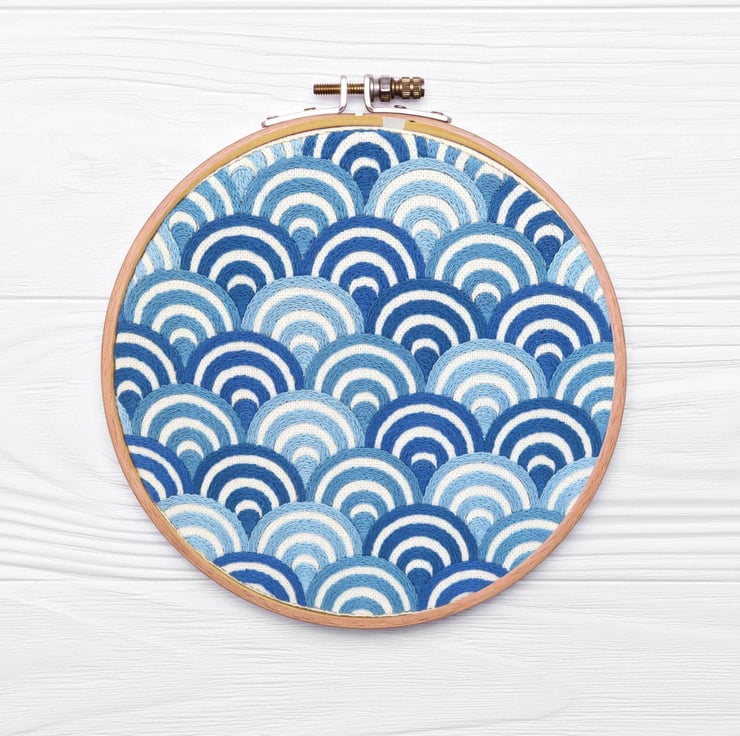The Waves Hand Embroidery Pattern design fits nicely in a 7-inch hoop.