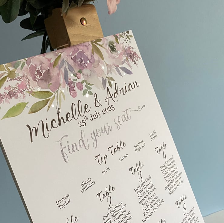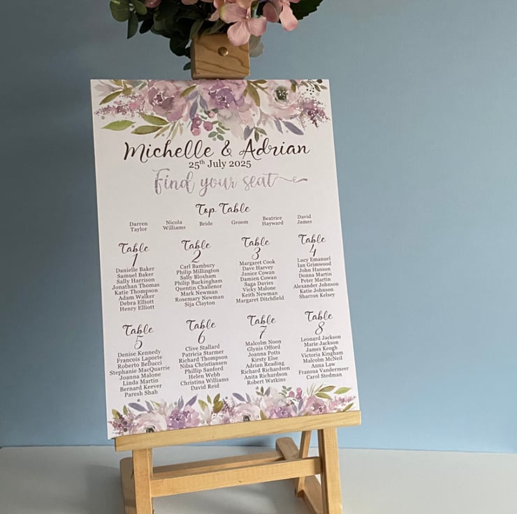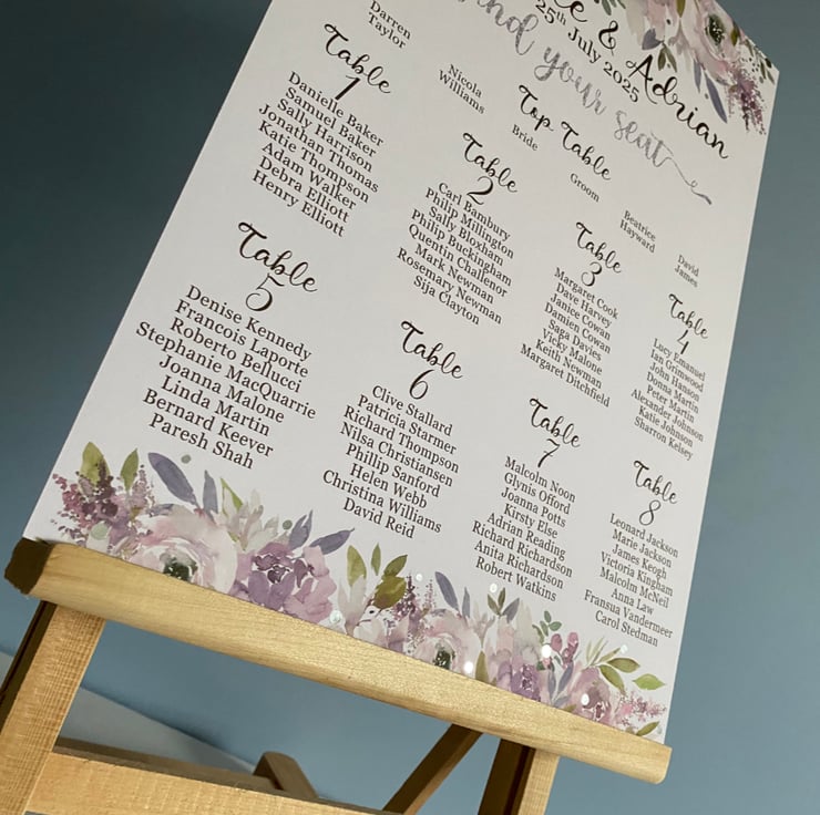 A2 poster - table plan is printed on 170gsm satin photo paper