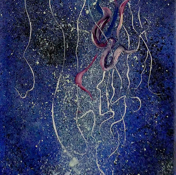 A colourful jellyfish fantasy sealife abstract oil painting full of movement and depth