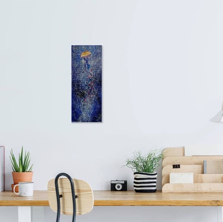 The painting size is 8 x 20 x 0.5 inches and painted using professional oil paints