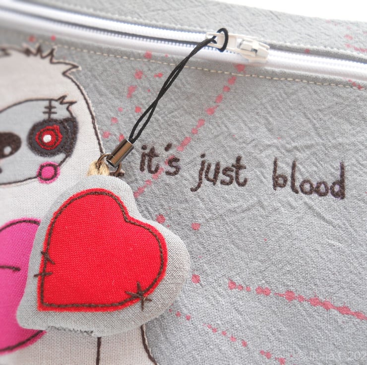 the detail, including the text “it’s just blood” is stitched on freestyle, using free motion embroidery.