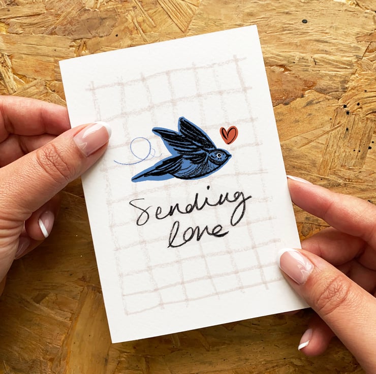 Lovebird Sending Love Card - Thinking of you Sympathy Card, Just Because Card