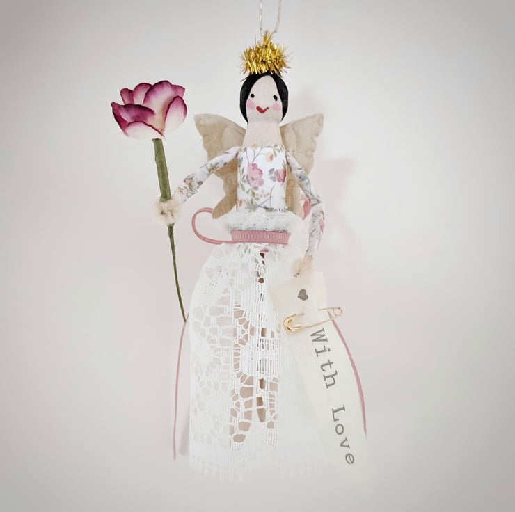 Your xmas flower fairy holds a special flower wand and comes with a lace fairy skirt, butterfly wings and a pinned message of love.