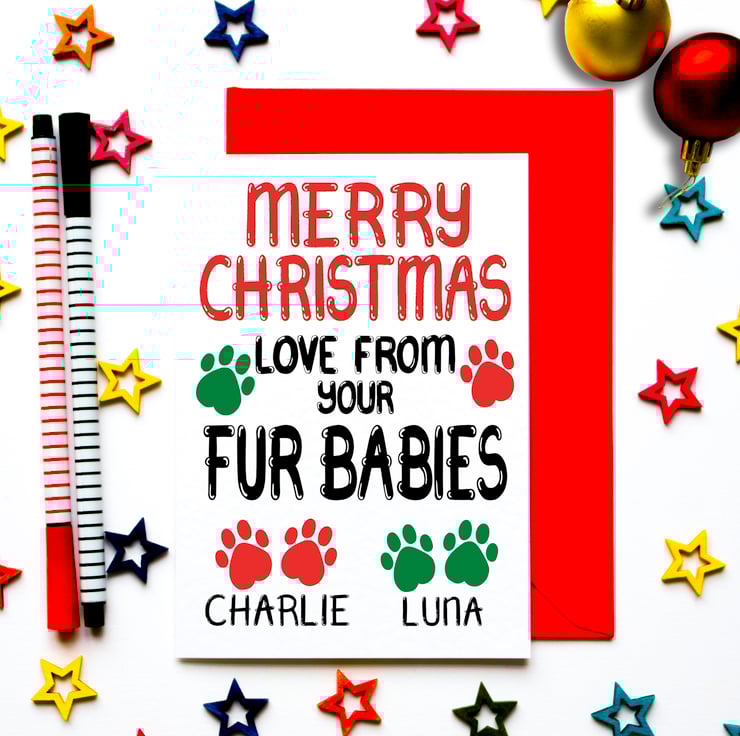 Personalised Christmas Card From Fur Babies, Dogs, Cats, Pets