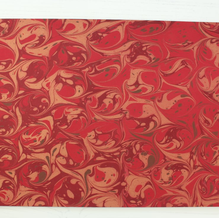 Marbled onto 270gsm off red base card made in the UK. The sheet is a4 size, long grain.