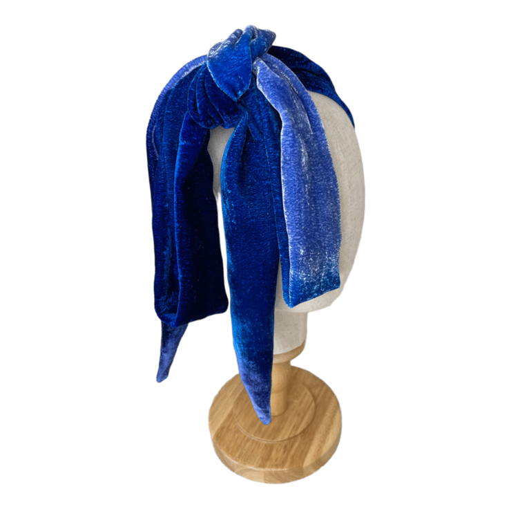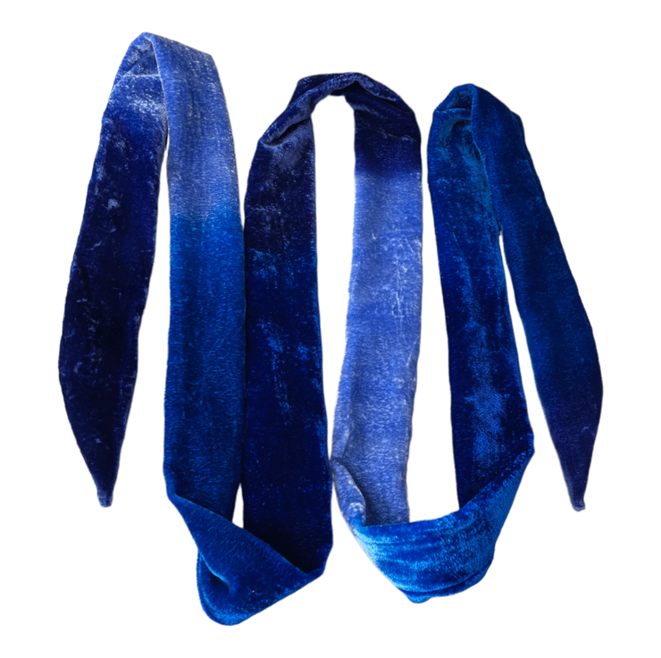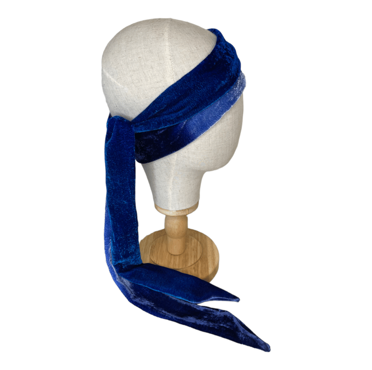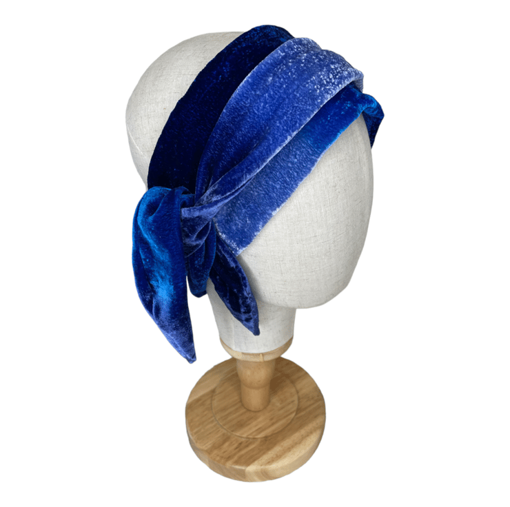 It can be worn in many ways; tied at the neck with a large bow or loop, tied as a headband or wrapped around your head with a large bow.