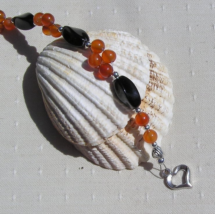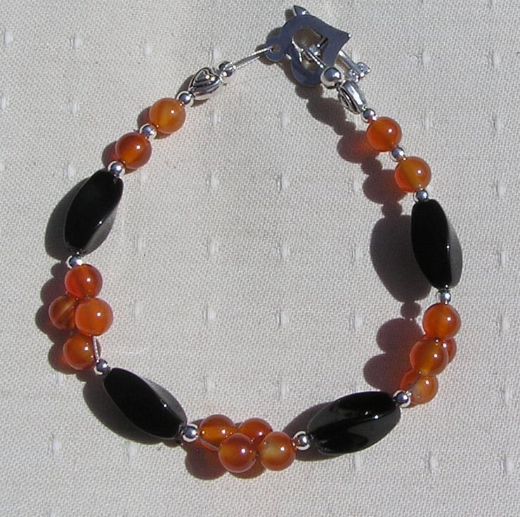 Black Agate & Red (Orange) Agate Gemstone Bracelet