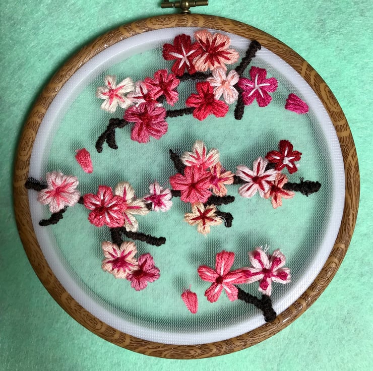 Vibrant, delicate and eye catching cherry blossom branches on tulle for dreamy floating effect when hung on wall.