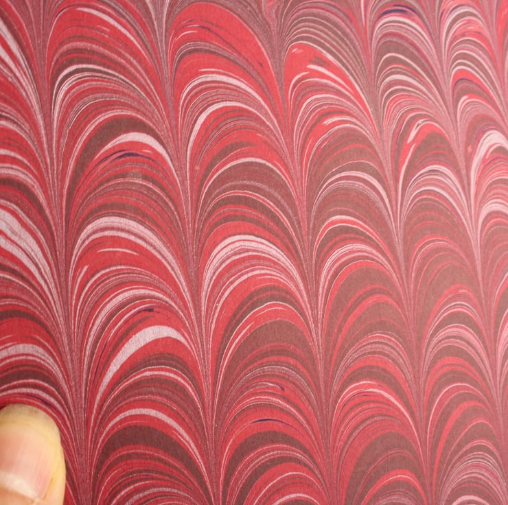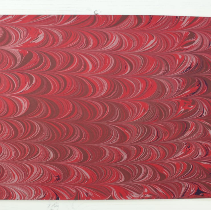 Marbled onto 270gsm red base card made in the UK. The sheet is a4 size, long grain.