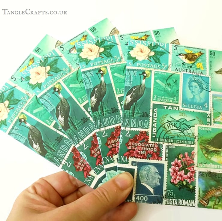 I have been making collages with upcycled vintage world postage stamps for years. Once the original collages have found new homes, I like to 'recycle' the original design as a print so that it can still be enjoyed as functional art.