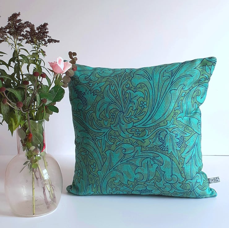 This William Morris print cushion cover is in a wonderful palette of greens and blues. It was a lucky remnant find, and I love the way the updated colours give a modern interpretation of this design. It would look equally good in a loft apartment as it would in a country cottage, and would make a lovely house warming present.