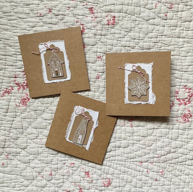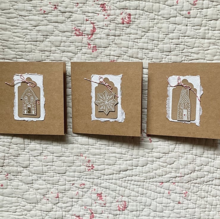 These gorgeous hand drawn tag Christmas cards come as a set of three, one of each design - one snowflake and two gingerbread houses. A lovely seasonal greeting for those special people in your life.