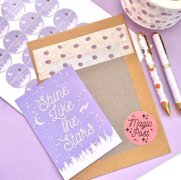 The card measures 5”x7” and they come in a biodegradable cello sleeve and a hard backed envelope to protect it as much as possible during shipping and postage is free.