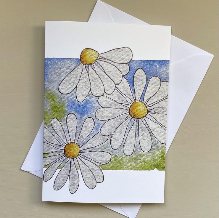 Daisy flower blank greeting card or notecard, a print from my own design,