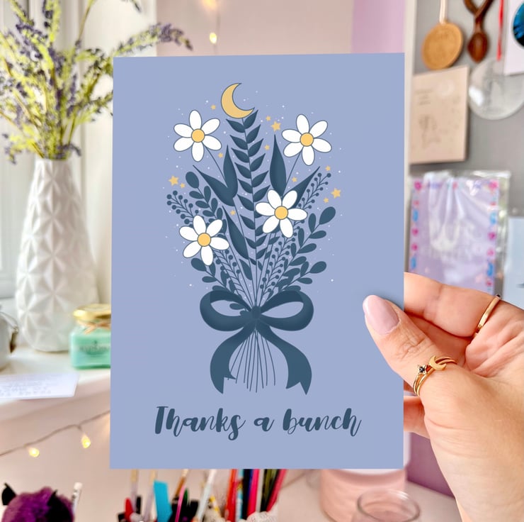 The card measures 5”x7” and they come in a biodegradable cello sleeve and a hard backed envelope to protect it as much as possible during shipping and postage is free.