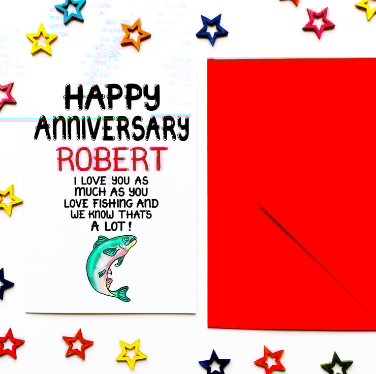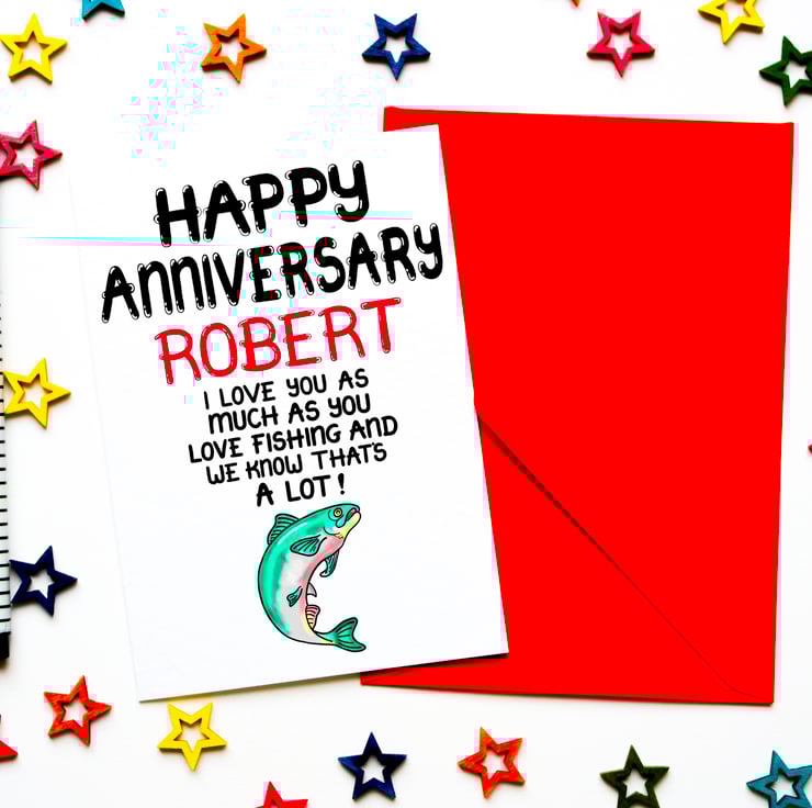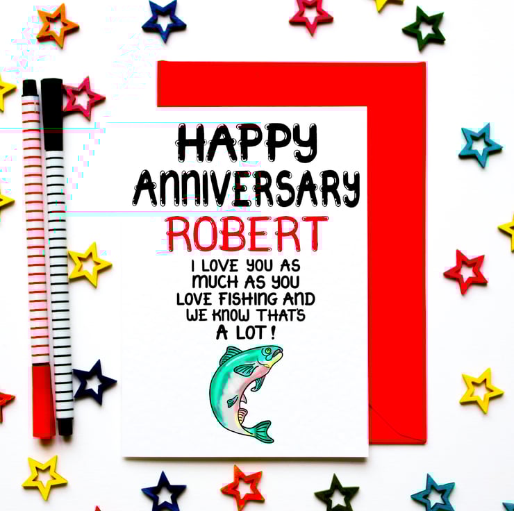 Personalised Fishing Wedding Anniversary Card For Husband, Wife, Him, Her